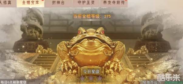 金蝉宝库是一起来修仙手游的一个副本游戏,进入到金蟾宝库副本游戏的时候,玩家首先就可以看到一只大金蟾在看着玩家们,金蝉也是有等级的,小编的金蝉等级已经达到275了,有的玩家比小编的等级还要高呢,这离不开玩家们每天的努力,金蝉宝库的关卡是有星级设置的。