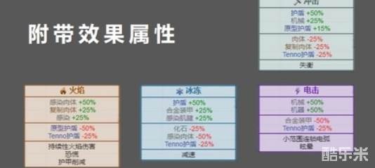护盾+50%;机械+25%;原型护盾+15%;肉体-25%;复制肉体-25%;Tenno护盾-25%;带来的效果就是失衡。