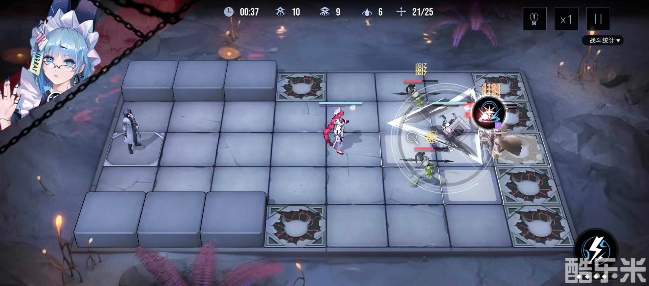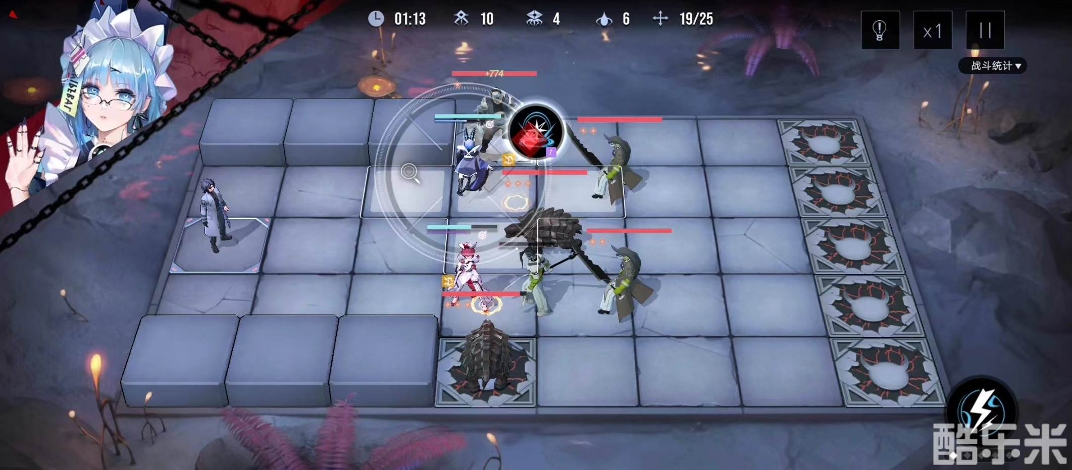 第二波在地图中间,我们直接给女仆一点能量和安一起堵门,等带核心的精英怪出来,直接开大清理。