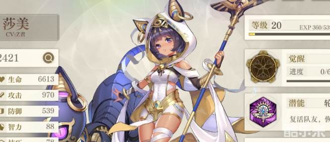 最后是一个辅助治疗,莎美,因为不管是什么队伍,都是需要一个治疗的,而莎美则是这款游戏里最好用的奶妈之一,不仅可以治疗队友,她的潜能“轮回之约”还可以复活队友并恢复生命,所以只要她不是最先死的,队伍相当于拥有一次复活机会。