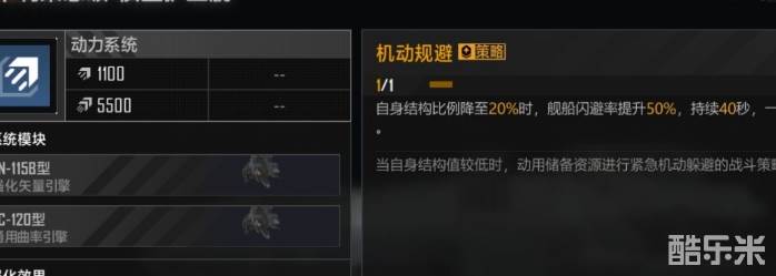 - 假如要使用窥察型作战的话,优先点出动力系统里的规避深化与策略“机动隐匿”,因为是前排站位的护卫舰,规避不高很容易沉船,有有余点数投入到近防火炮系统深化防空才华。