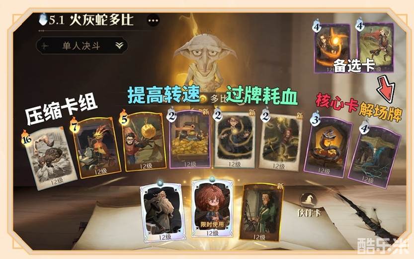 2、前期先调整牌序与解场,确保能强化到“金色飞贼”与“嗅嗅”后再使用邓布利多伙伴卡。