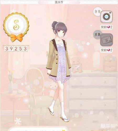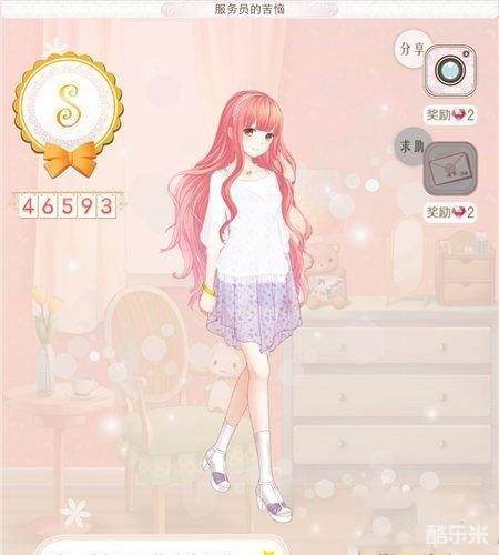 11、服务员的苦恼、发型:初始发型。外套:半透明上衣。连衣裙:紫藤花阁。袜子:普通短袜。鞋子:紫霞。头饰:冰晶头箍。颈饰:糖果项链。手饰:普通手镯