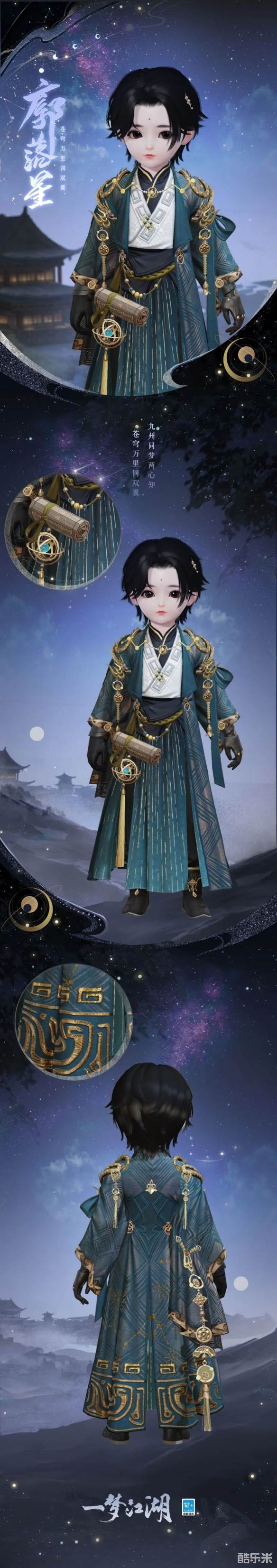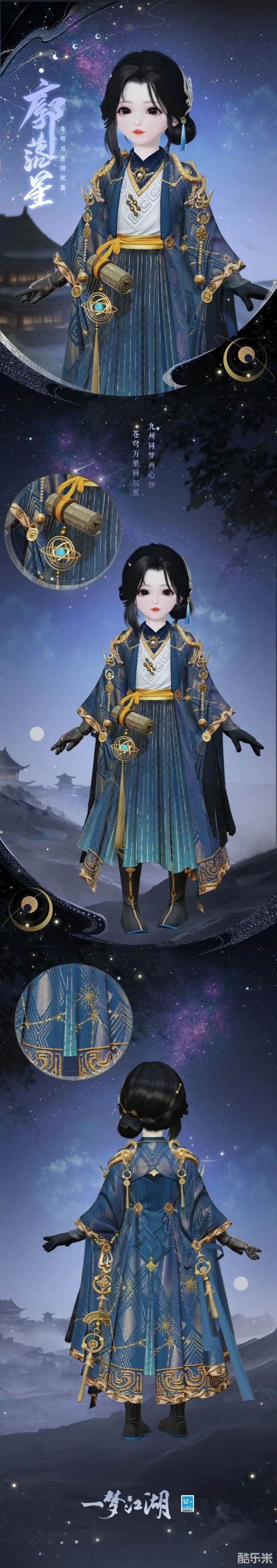 【大国重器联动时装·廓落星】以浑仪星象为设计元素,将机关术与观星术结合,在衣衫上绘制浪漫星空。《一梦江湖》与各位少侠一起,筑梦云巅!