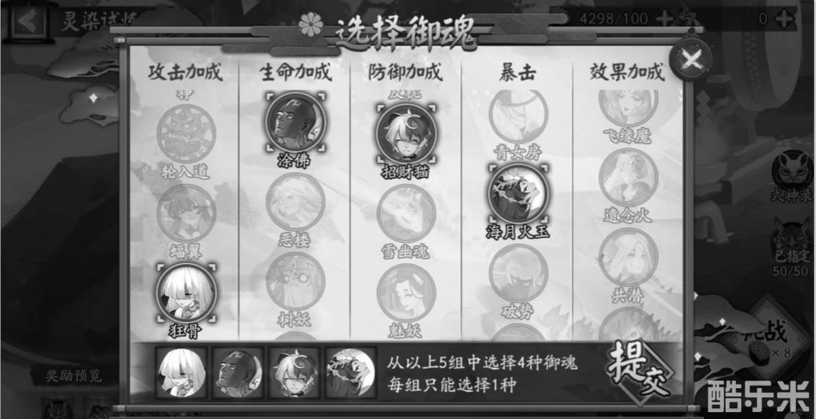 御魂自选建议:缺什么选什么(PVE类输出御魂优先、PVP类招财优先)。