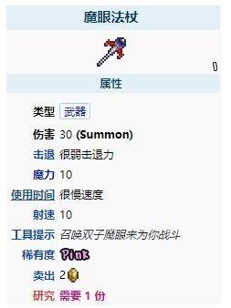 1、魔眼法杖是困难模式的召唤武器,使用后生成处在第二形态的双子魔眼的迷你版本。