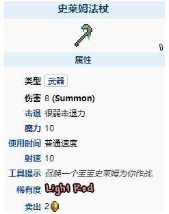 1、史莱姆法杖是一把召唤武器,它可以召唤一个宝宝史莱姆保护你。