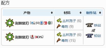 合成获得:玩家在铁砧或铅砧处,使用6个丛林孢子+9个毒刺,可以获得1个荆棘旋刃。