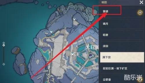 4、在弹出的地图选项中,找到蒙德区域并前往。