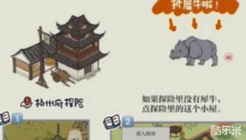 3、注意:如果探险地图中没有犀牛,玩家需要点击探险里的这个小屋子;