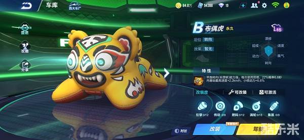 B车布偶虎由雷诺重工打造,经典虎年造型赛车,童年回忆。该车各属性转向和集气方面皆优秀,是一辆颜值与性能兼具的B级赛车。