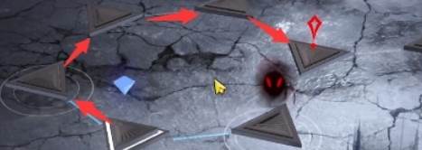 5、继续向上走绕一个圈触发红色感叹号,将两个敌人聚到一起。