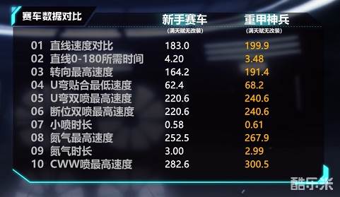 从六维性能图来看,重甲神兵各项属性均非常优秀,其中转向能力非常突出,搭配实用的赛车特性,震慑赛场,无人可敌。