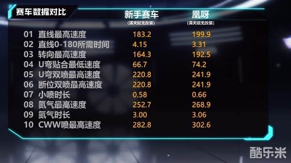 从赛车的六维特性图上可以看出,凰呀的漂移、转向属性都十分优秀。强大的漂移属性让车手可以更轻松的使用进阶氮气出弯的操作,优秀的转向让赛车出弯后的路线调整更容易。