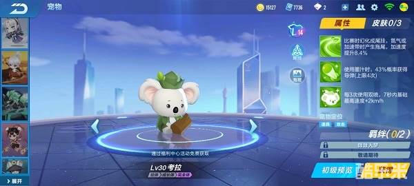 考拉拥有呆萌的外表,另外宠物技能在道具模式中非常实用,推荐喜欢道具模式的各位赛车手门一定不要错过这只可爱的宠物!