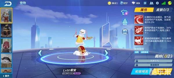 比赛时幻化成尾挂,氮气或加速带时产生拖尾,加速度提升3%,最高可提升至8.5%。此属性的增益数值在所有宠物中处于中等水平。