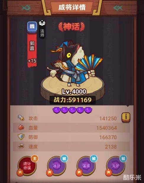 郭嘉:郭嘉是魏国神话品质的咸将,场上位置是法师,发动攻击有一定的概率可以冰冻敌人,在前期可以发挥重要作用。