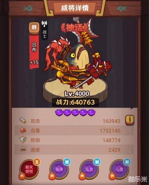 主要输出:吕布是队伍中最重要的一个咸将,我们可以在资源稀缺的情况下主要对吕布的装备进行升级,以及对吕布本人进行提升。