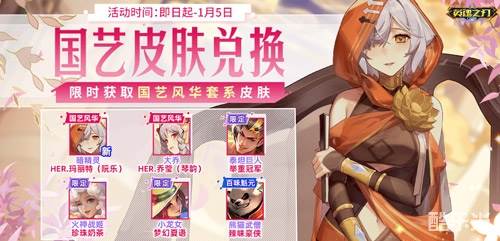 2022年12月9日-2023年1月5日,国艺皮肤兑换奖池更新!参与活动,限时获取全新国艺风华套系皮肤暗精灵-HER.玛丽特(阮乐)、大乔-HER.乔莹(琴韵)、火神战姬-珍珠奶茶、等好礼!另外,首周暗精灵-HER.玛丽特(阮乐)享兑换折扣!
