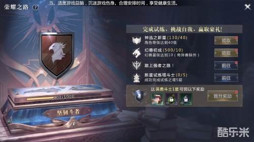 如图所示。相关任务奖励都可在“荣耀之路”页面查看,完成任务即可领取相关奖励。达到相应等阶就可以进阶,并获得大量奖励。