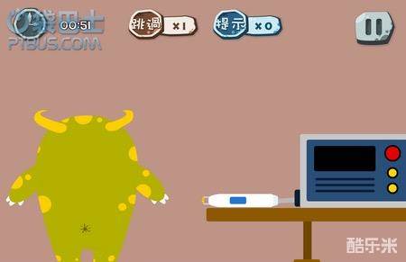 第三十三关:本关比较思路广,小编也是尝试了许久才搞明白。你要将机器的音量调到最大声,然后头顶的镭射球就会开始摇晃,点击镭射球,掉下来砸死小怪兽。