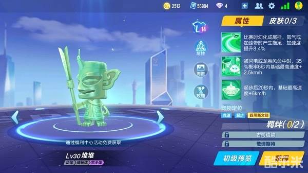 比赛时幻化成尾挂,氮气或加速带时产生拖尾,加速度提升3%,最高提升至8.4%。此属性的增益数值在所有宠物中处于中下水平。
