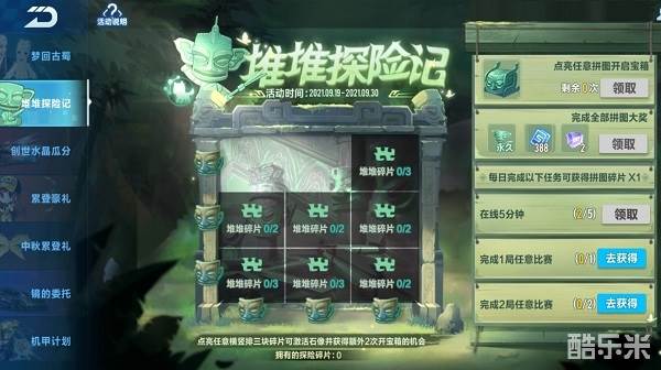 车手们可以前往福利-堆堆探险记活动完成任务获得堆堆碎片,使用指定数量碎片可点亮拼图,并获得开启宝箱的机会。当完成全部拼图时,即可获得最终大奖—永久萌宠堆堆!