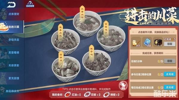 车手们前往福利中心完成任务获取材料即可制作川菜料理,在完成所有川菜的制作后即可获得永久宠物麻婆豆腐!快来一起制作川菜吧!