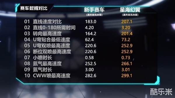 从特性可以看出星海幻翼属于转向类型的赛车,道具赛中平跑转向的能力强说明赛车可以应付所有的赛道,加上小喷动力、速度、时间+18%,使得赛车的性能更上一层楼。此特性对选手的抓地能力会有较大的提升。对于竞速来说,虽然cww速度略微降低,但是在小喷属性的加持下也无伤大雅,并且在小喷时间的加持下,氮气延续也会更加容易。