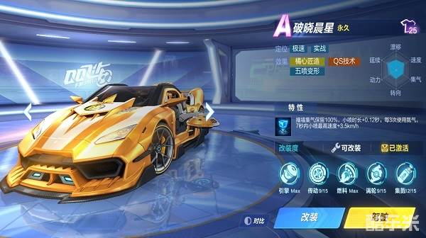 破晓晨星有着非常漂亮的外观,同时还有特别优秀的延续和转向能力,搭配极其强大的特性在许多赛道中都有着非常出色的表现。喜欢这辆赛车的车手不要错过哦。