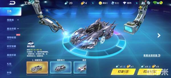A车L-战耀双生可通过寻宝-工坊中打造,打造满3、5、8格可获得期限L-战耀双生;可打造满10格,立即获得L-战耀双生(永久)。