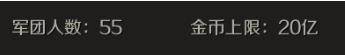 那我所拥有的军团人数是50人,金币上限为10亿,当我提升为2级的时候
