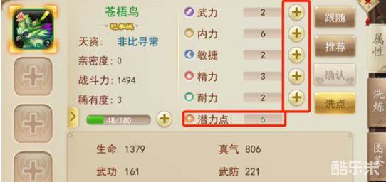 首先宠物可以跟着人物一起通过战斗,任务,副本来获取经验值从而提升宠物自身的等级。等级提升后将会获得5个潜力点,玩家可自由分配宠物潜力从而提升宠物单独的某项属性;