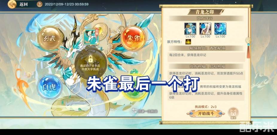 •前面四关朱雀最后一个打,最后一关buff选朱字