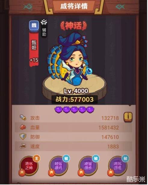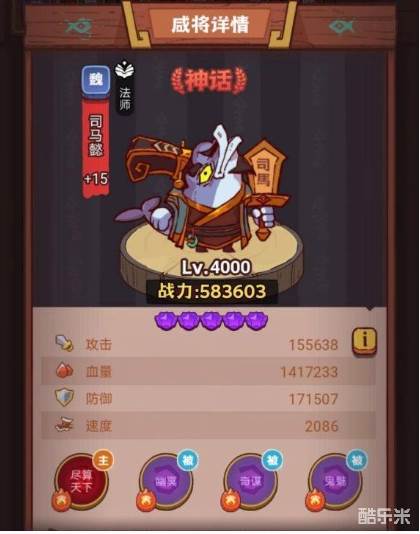 司马懿:司马懿是魏国神话品质的咸将,场上位置是法师,随着回合数的增加和友军技能的释放,司马懿的战力会越来越高。