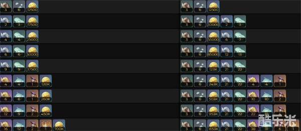 2:70级突破:生长碧翡块*6、灭诤草蔓*12、绝云椒椒*45、史莱姆原浆*12、摩拉*100000