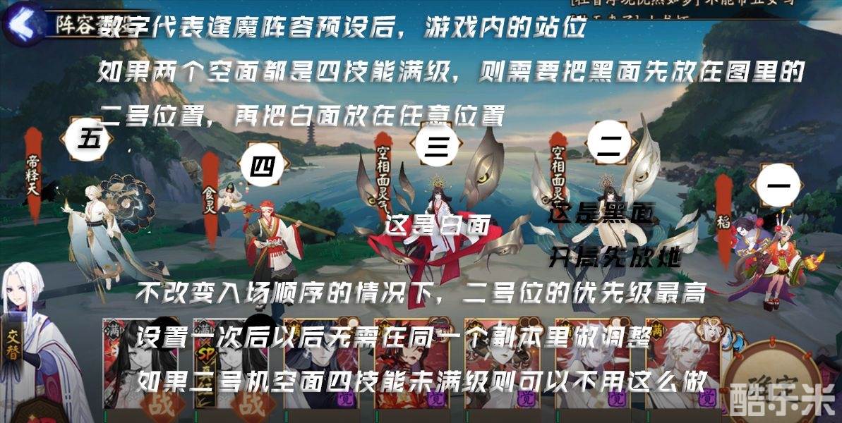 有皮肤的情况下,推荐黑面使用原皮,白面使用上美联动皮。上美联动皮黑面大招动画慢于原皮,白面大招动画速度一致。如果两个面灵气都是满技能,站位注意事项如下