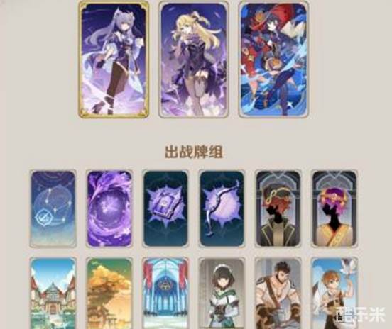 配置参考:宵宫+刻晴+菲谢尔,事件牌(双雷共鸣,充能,万能,鹤归之时),支援牌(璃月港,群玉阁,图书馆,立本)