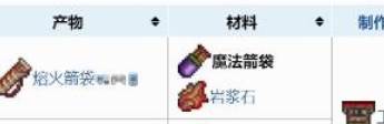 熔火箭袋制作:使用1个魔法箭袋和1个岩浆石,可以在工匠作坊合成1个熔火箭袋。