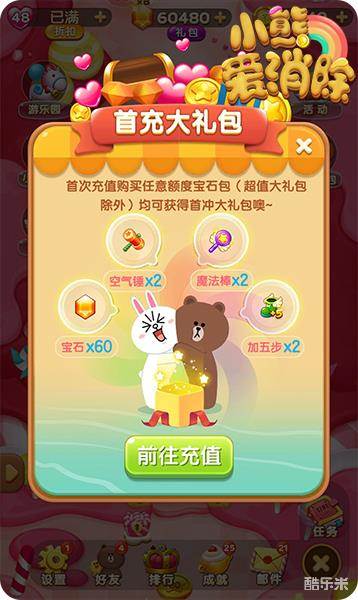 《小熊爱消除》是由龙图发行的全球首款六边形消除手游。获得LINE正版授权,以LINE经典卡通角色为元素,精心设计45个主题章节、超过500个充满奇趣的关卡。分数关、钥匙关、巧克力关……独特的消除方式与华丽的消除特效,带来妙趣横生的挑战和轻松愉悦的成就感。更可与好友互动、挖掘无限惊喜福利,尽情享受休闲乐趣!
