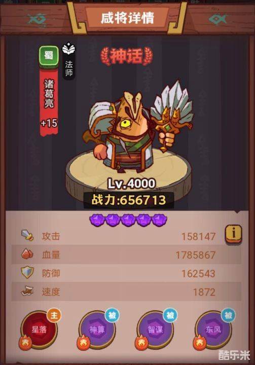 诸葛亮:诸葛亮是蜀国神话品质的咸将,位置也是法师,被动技能神算可以对敌方造成多个负面效果。