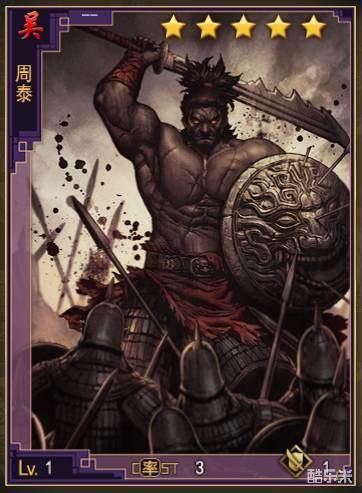 周泰在万马丛中效死救主,以肉身挡刀救得了孙权性命,此举与赵子龙单骑救主一般无二,他更 是穷尽一生护卫东吴政权不倒,忠义至死。被后人褒奖为“东吴周泰不减魏之许褚、蜀之赵云也 。壮哉丈夫!”本次《率土之滨》推出的五星吴阵营武将周泰,其定位正是以防御著称的步兵, 凭借数值1的近距离攻击,当仁不让的占据队伍前锋位置,为队伍承担起大量伤害,坐实“超级保 镖”的称号!