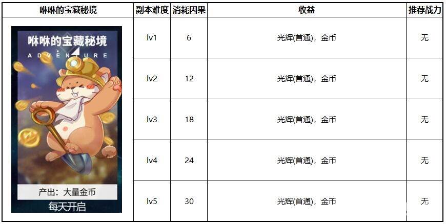 其中咻咻的宝藏秘境和炼成复刻是清怪;奥林匹斯之火是清怪并护送雅典娜到终点,中间要注意雅典娜血量;时之痕是追逐并击杀怪物。随着副本难度提升,怪物等级也会相应提升,玩家可以根据推荐战力和怪物职介选用相对应的阵容。