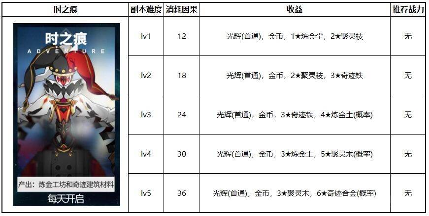 副本可以产出金币、魂器升级材料、神格经验和炼金工坊奇迹建筑材料等资源。不同难度消耗对应的因果值,每个难度首通时会有光辉奖励。