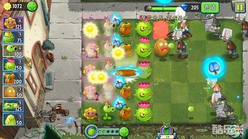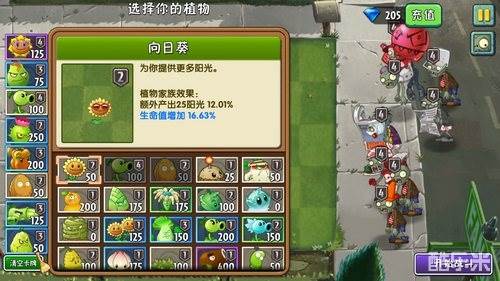 游戏开局种上向日葵,以获取足够的阳光种植其他植物。这个关卡跟前面的关卡其实差不多,我们只需要带上高阶植物即可。小编这边带的是:豌豆射手+辣椒投手+导向蓟,再搭配一次性植物:窝瓜+岩浆番石榴(只带一个也是可以的)。