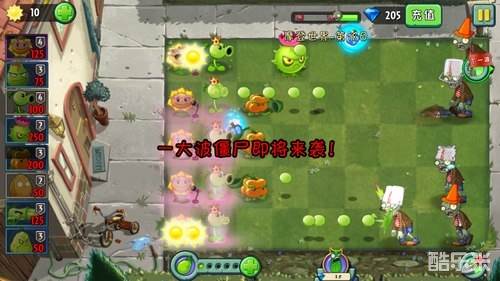 最后当一大波僵尸来袭的时候,给控场植物能量豆,这样能够帮助我们消灭大波僵尸。