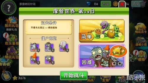 摩登世界第12日过关条件:不能失去超过15颗植物