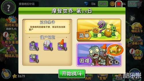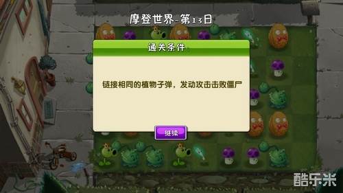 摩登世界第13日过关条件:链接相同的植物子弹,发动攻击击败植物