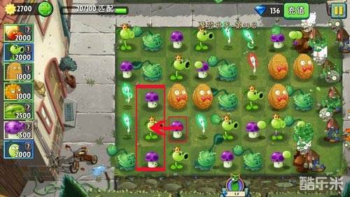 当消除足够多的植物,我们会获得对应的阳光,这时候我们可以点击旁边的格子,会把场上现有的植物替换成更好的。如:小喷菇—大喷菇,坚果—高坚果,豌豆射手—火焰豌豆射手等。