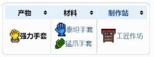 使用1个泰坦手套和1个猛爪手套,可以在工匠作坊合成1个强力手套。